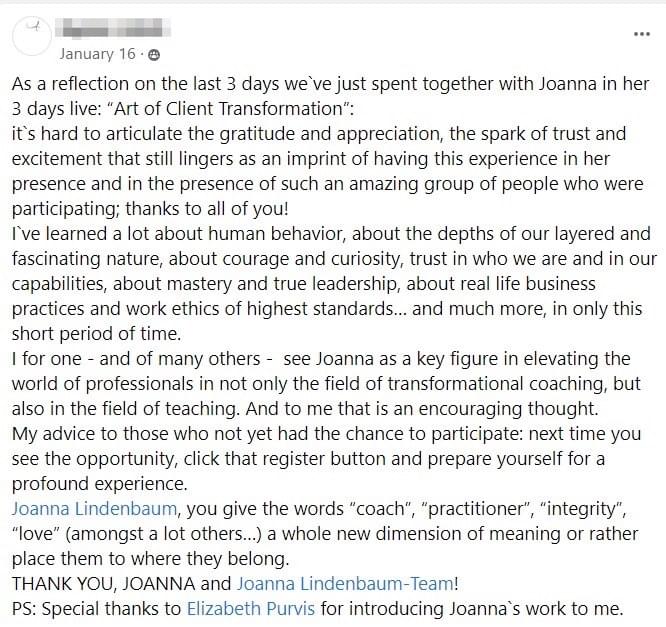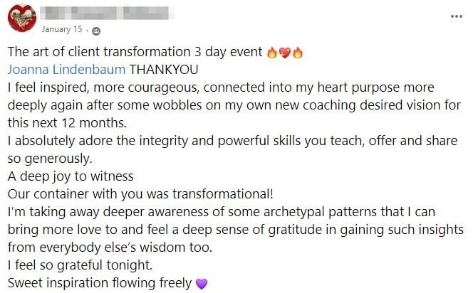 Joanna Lindenbaum has coached & trained thousands around the world for nearly 20 years. She is a powerhouse of human psyche insight, grounded intuition, and transformational techniques, which she generously shares with her students.